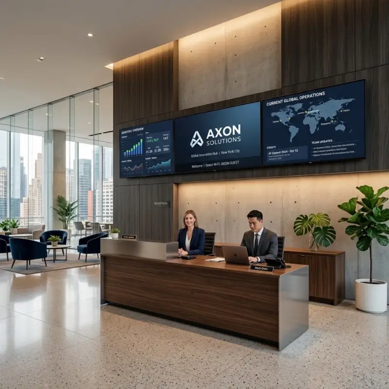 Sustituye la televisión apagada de la entrada por un mural dinámico. Muestra videos institucionales, el clima y tu identidad de marca a cada visitante.